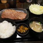 味はもう何も言うことはありません。間違いないやつです。自分好みに石焼で。塩とオリジナルスパイス、醤油、わさびなどに付けていただきます。 ご飯お代わり可能。ランチなのでオリジナルドレッシングがかかったサラダとワカメスープとドリンク付きでした。#サーロインステーキ #ステーキ #定食 #石焼き