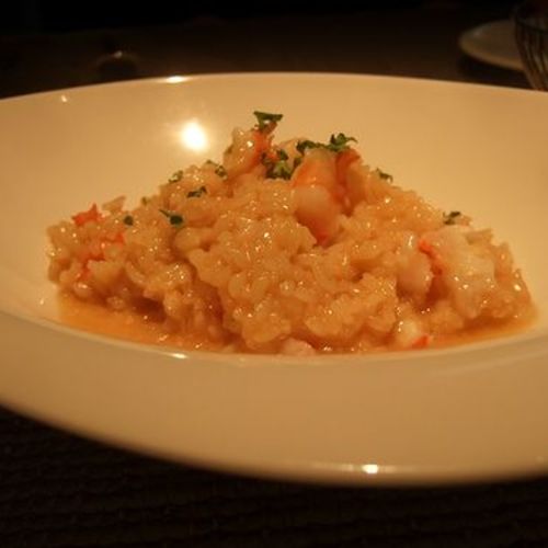 甲殻類のソースで煮込んだ海老リゾット
