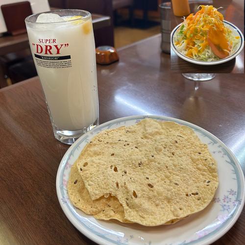 ラッシーサワー、パパド、サラダ