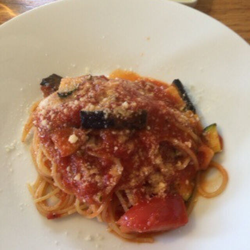春野菜のトマトソースパスタ